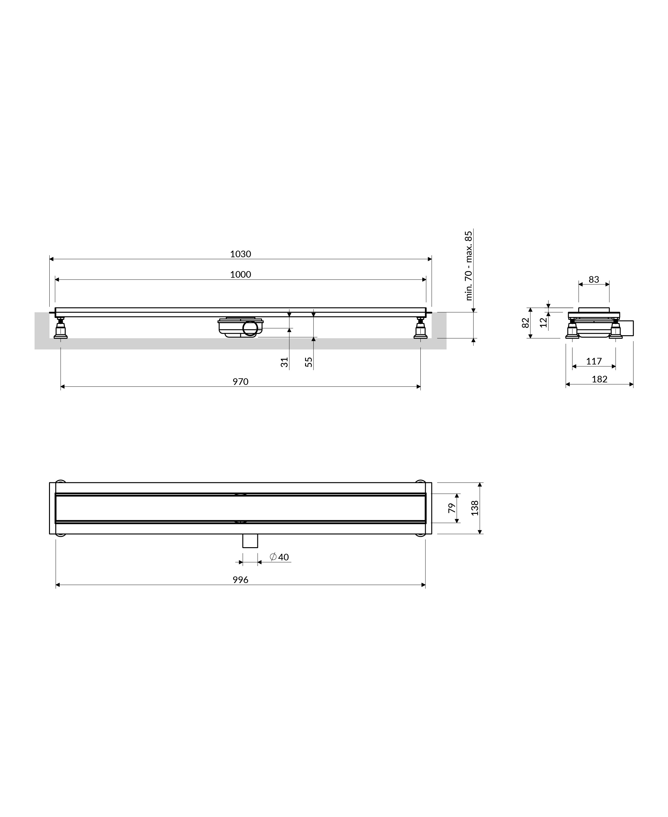 LOWFIX | Duschrinne mit Vollblende, 100 cm