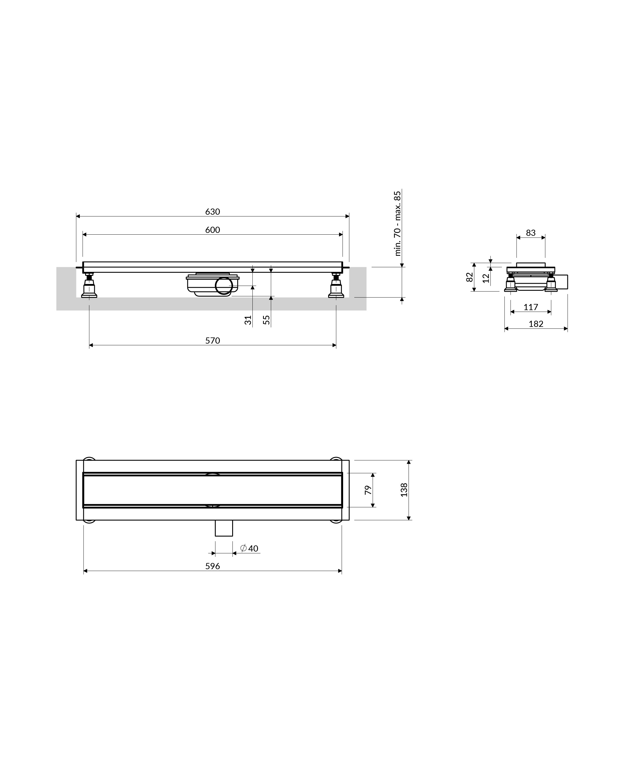 LOWFIX | Duschrinne mit Vollblende, 60 cm