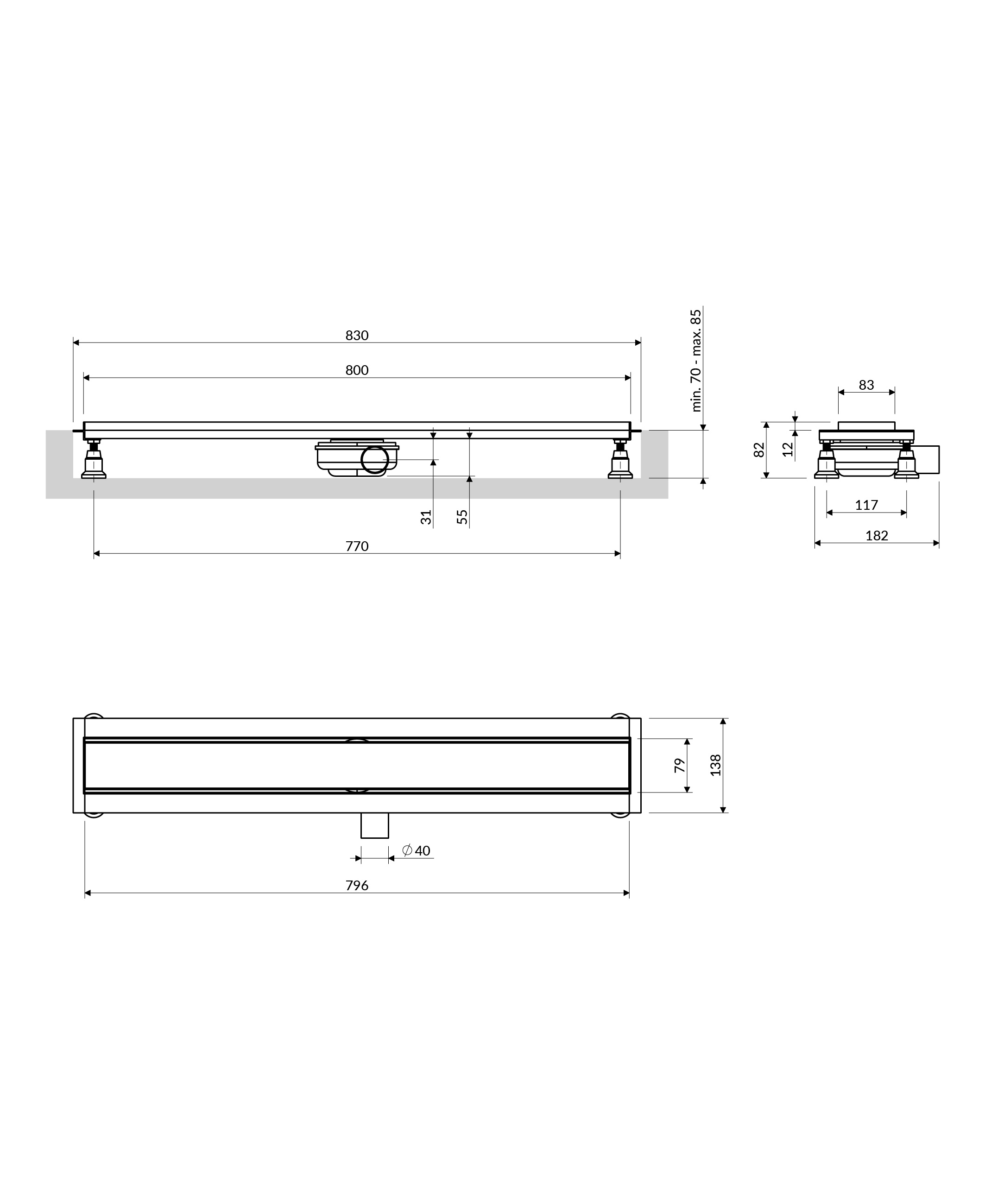LOWFIX | linear shower drain with tileable cover, 80 cm